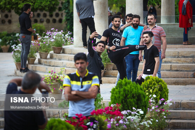 اصلا اگر حضور گروههای دستهجمعی در کنار یکدیگر را در نظر نگیریم، باز هم رعایت نکردن تمهیدات اولیه یعنی استفاده از ماسک و دستکش در بین حدود ۹۰ درصد از مخاطبان مقبرهی حافظ به روشنی به چشم میآید. آنهم در شرایطی که بخشِ زیادی از بازدیدکنندگان، زائرانِ مقبرهی حافظاند که شاید در گذشتهی قبل از کرونا، هفتهای یکی، دو بار به این محوطهی تاریخی میآمدند، با آدابی مشابه همین تصاویری که ثبت شدهاند.