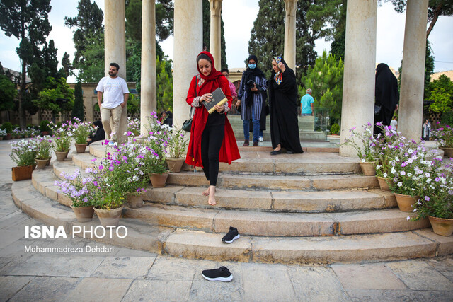 تصاویر نشان میدهد مخاطبان مقبرهی حافظ، در صفی که نزدیک به یکدیگر تشکیل شده، وارد میشوند و رفتارشان گویا مشابه همان آیین و آدابی است که پیش از دورانِ کرونا در زمانِ حضور در حافظیه به آن پایبند بودهاند!