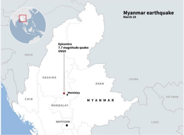 فیلم زمین لرزهای به بزرگی ۷.۷ ریشتر میانمار را لرزاند ۸-فروردین-۱۴۰۴